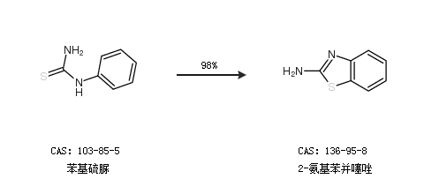 1.通过苯基硫脲合成2-氨基苯并噻唑,收率约98%;