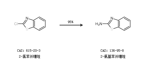 2.通过2-氯苯并噻唑合成2-氨基苯并噻唑,收率约95%;