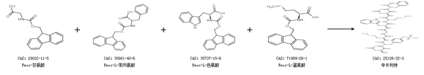 1.通过Fmoc-甘氨酸、Fmoc-L-苯丙氨酸、Fmoc-L-色氨酸和Fmoc-L-蛋氨酸合成辛卡利特