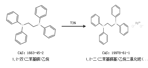 2.通过1,2-双(二苯基膦)乙烷合成1,2-二(二苯基膦基)乙烷二氯化钯(II),收率约73%;