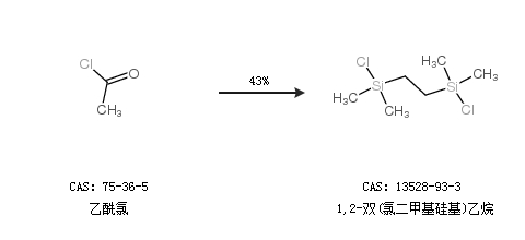 1.通过乙酰氯合成1,2-双(氯二甲基硅基)乙烷,收率约43%;