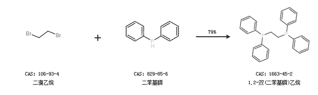 1.通过二溴乙烷和二苯基膦合成1,2-双(二苯基膦)乙烷,收率约79%;