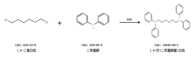 1.通过1,6-二溴己烷和二苯基膦合成1,6-双(二苯基膦基)己烷,收率约68%;