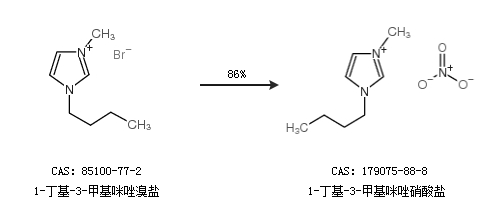 1.通过1-丁基-3-甲基咪唑溴盐合成1-丁基-3-甲基咪唑硝酸盐,收率约86%;