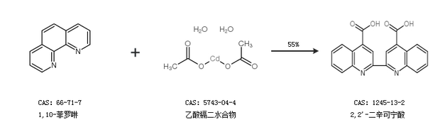 2.通过1,10-菲罗啉和乙酸镉二水合物合成2,2''-二辛可宁酸,收率约55%;