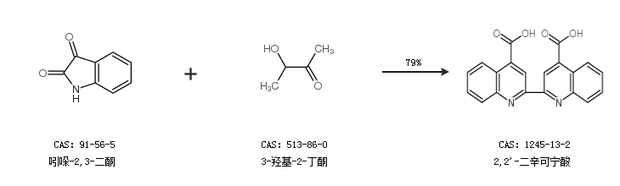 1.通过吲哚-2,3-二酮和3-羟基-2-丁酮合成2,2''-二辛可宁酸,收率约79%;