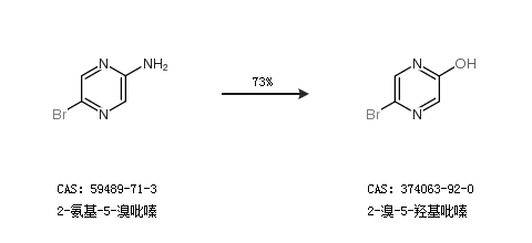 1.通过2-氨基-5-溴吡嗪合成2-溴-5-羟基吡嗪,收率约73%;