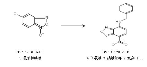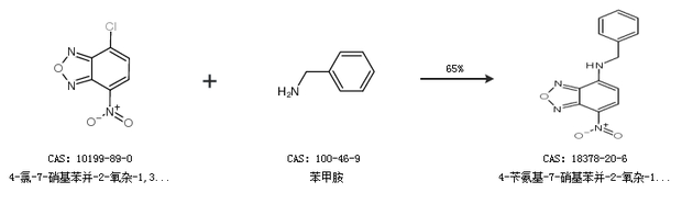 1.通过4-氯-7-硝基苯并-2-氧杂-1,3-二唑和苯甲胺合成4-苄氨基-7-硝基苯并-2-氧杂-1,3-二唑,收率约65%;
