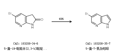 2.通过5-溴-1H-吡咯并[2,3-b]吡啶-2-酮合成5-溴-7-氮杂吲哚,收率约49%;