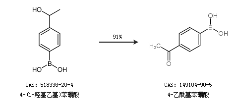 1.通过4-(1-羟基乙基)苯硼酸合成4-乙酰基苯硼酸,收率约91%;