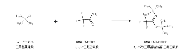 1.通过三甲基氯硅烷和2,2,2-三氟乙酰胺合成N,O-双(三甲基硅烷基)三氟乙酰胺