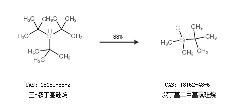 2.通过三-叔丁基硅烷合成叔丁基二甲基氯硅烷,收率约88%;