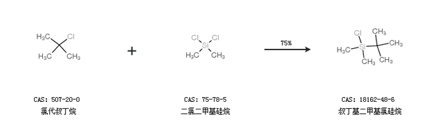 1.通过氯代叔丁烷和二氯二甲基硅烷合成叔丁基二甲基氯硅烷,收率约75%;