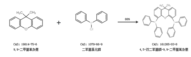 1.通过9,9-二甲基氧杂蒽和二苯基氯化膦合成4,5-双二苯基膦-9,9-二甲基氧杂蒽,收率约88%;