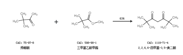 1.通过频哪酮和三甲基乙酸甲酯合成2,2,6,6-四甲基-3,5-庚二酮,收率约63%;