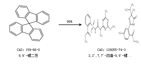1.通过9,9''-螺二芴合成2,2'',7,7''-四溴-9,9''-螺二芴,收率约99%;
