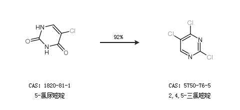 1.通过5-氯尿嘧啶合成2,4,5-三氯嘧啶,收率约92%;