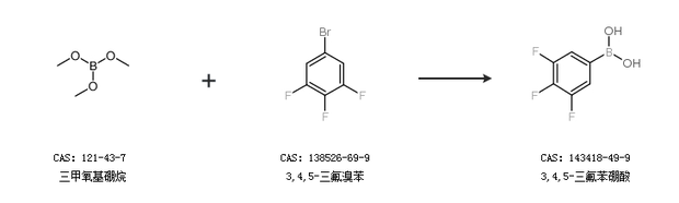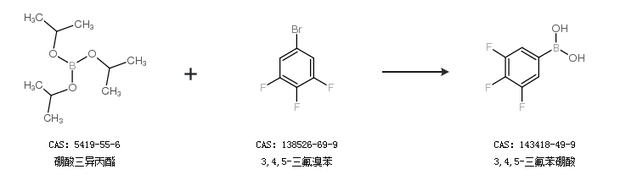 1.通过三甲氧基硼烷和3,4,5-三氟溴苯合成3,4,5-三氟苯硼酸
