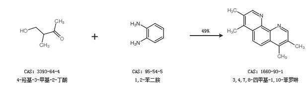 1.通过4-羟基-3-甲基-2-丁酮和1,2-苯二胺合成3,4,7,8-四甲基-1,10-菲罗啉,收率约49%;