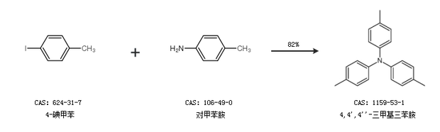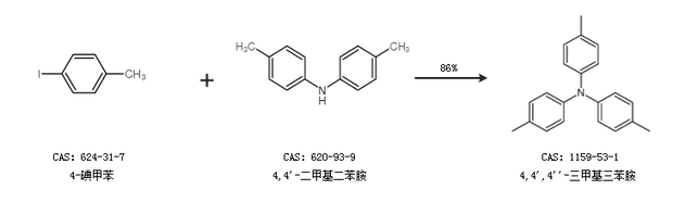 2.通过4-碘甲苯和4,4''-二甲基二苯胺合成4,4'',4''''-三甲基三苯胺,收率约86%;
