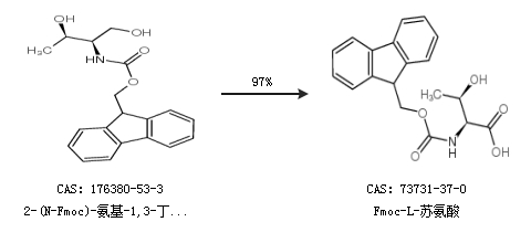 2.通过2-(N-Fmoc)-氨基-1,3-丁二醇合成Fmoc-L-苏氨酸,收率约97%;