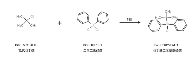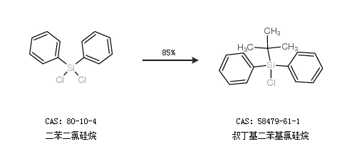 1.通过氯代叔丁烷和二苯二氯硅烷合成叔丁基二苯基氯硅烷,收率约78%;