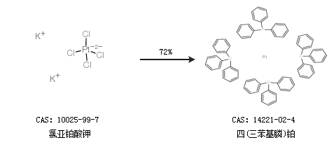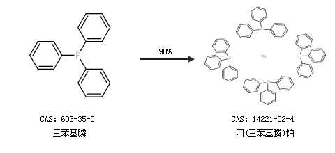 1.通过三苯基膦合成四(三苯基膦)铂,收率约98%;