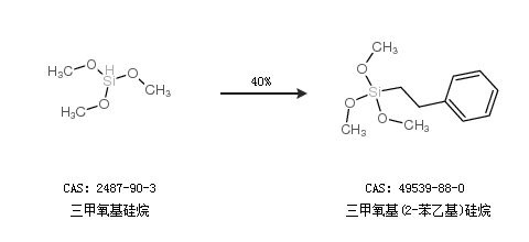 1.通过三甲氧基硅烷合成三甲氧基(2-苯乙基)硅烷,收率约40%;