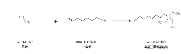 1.通过甲醇和1-辛烯合成辛基三甲氧基硅烷