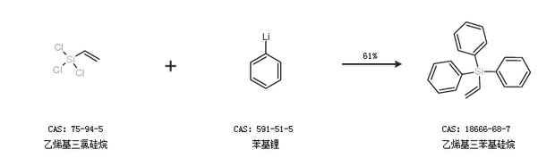 2.通过乙烯基三氯硅烷和苯基锂合成乙烯基三苯基硅烷,收率约61%;