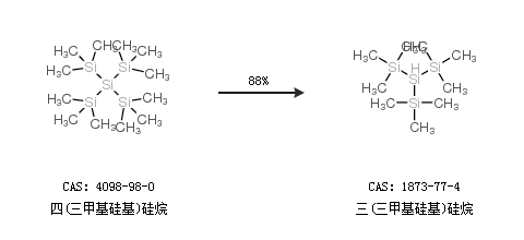 1.通过四(三甲基硅基)硅烷合成三(三甲基硅基)硅烷,收率约88%;