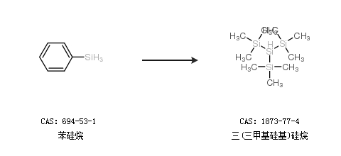 2.通过苯硅烷合成三(三甲基硅基)硅烷