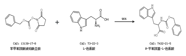 2.通过苯甲氧羰酰琥珀酰亚胺和L-色氨酸合成N-苄氧羰基-L-色氨酸,收率约96%;