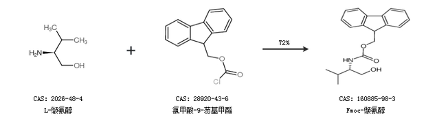 2.通过L-缬氨醇和氯甲酸-9-芴基甲酯合成Fmoc-缬氨醇,收率约72%;