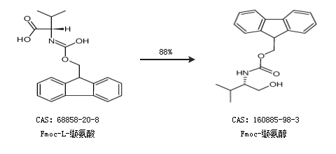 1.通过Fmoc-L-缬氨酸合成Fmoc-缬氨醇,收率约88%;