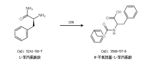 2.通过L-苯丙氨酰胺合成N-苄氧羰基-L-苯丙氨酸,收率约10%;