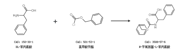 1.通过DL-苯丙氨酸和氯甲酸苄酯合成N-苄氧羰基-L-苯丙氨酸
