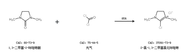 2.通过1,3-二甲基-2-咪唑啉酮和光气合成2-氯-1,3-二甲基氯化咪唑啉,收率约85%;