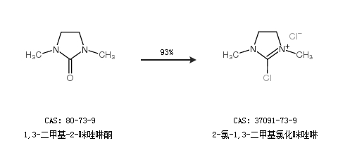 1.通过1,3-二甲基-2-咪唑啉酮合成2-氯-1,3-二甲基氯化咪唑啉,收率约93%;