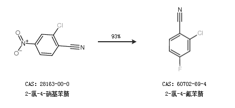 1.通过2-氯-4-硝基苯腈合成2-氯-4-氟苯腈,收率约93%;