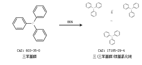 2.通过三苯基膦合成三(三苯基膦)羰基氢化铑,收率约86%;
