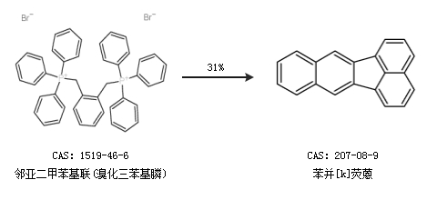 2.通过邻亚二甲苯基联(溴化三苯基膦)合成苯并[k]荧蒽,收率约31%;