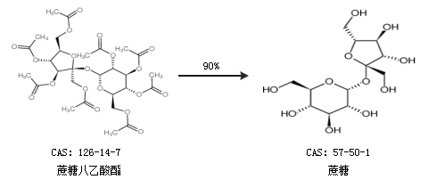 1.通过蔗糖八乙酸酯合成蔗糖,收率约90%;