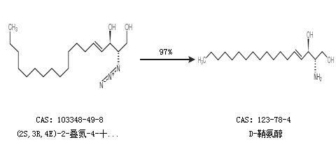 1.通过(2S,3R,4E)-2-叠氮-4-十八碳烯-1,3-二醇合成D-鞘氨醇,收率约97%;