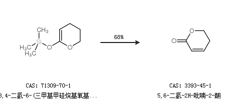 1.通过3,4-二氢-6-(三甲基甲硅烷基氧基)-2H-吡喃合成5,6-二氢-2H-吡喃-2-酮,收率约68%;