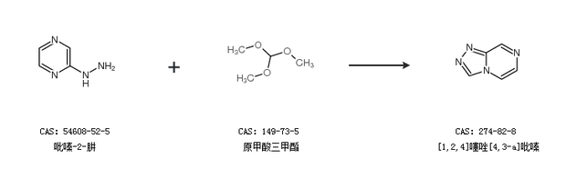 1.通过吡嗪-2-肼和原甲酸三甲酯合成[1,2,4]噻唑[4,3-a]吡嗪