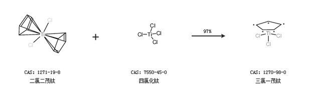 1.通过二氯二茂钛和四氯化钛合成三氯一茂钛,收率约97%;