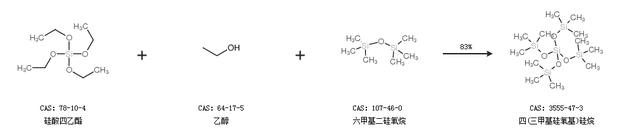 1.通过硅酸四乙酯和六甲基二硅氧烷合成四(三甲基硅氧基)硅烷,收率约91%;