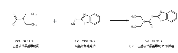中文别名 二乙基二硫代氨基甲酸-2-苯并噻唑酯;N,N-二乙基二硫代氨基苯并噻唑;