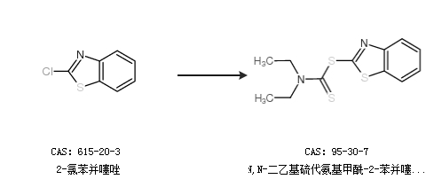 1.通过2-氯苯并噻唑合成N,N-二乙基硫代氨基甲酰-2-苯并噻唑硫醚